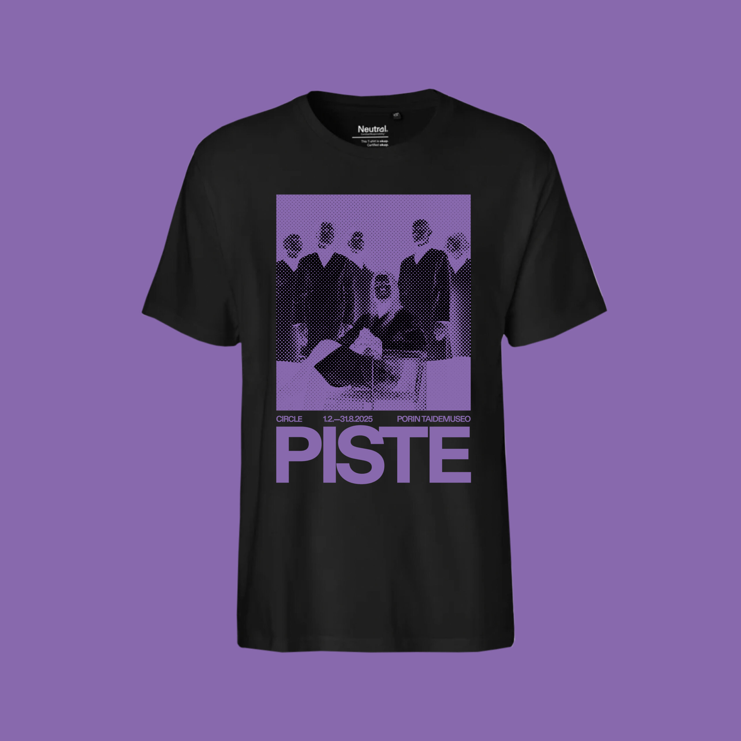 One color (purple) print (front) on a black Neutral (Unisex Regular) T-shirt.